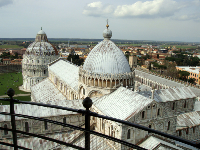 View of the Duomo and the Baptistery from the top of the Leaning Tower: