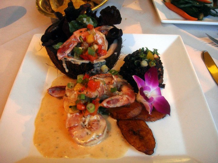 Main courses we ordered the lobster tail and steak and coconut shrimp. The coconut shrimp was really nice even to see: