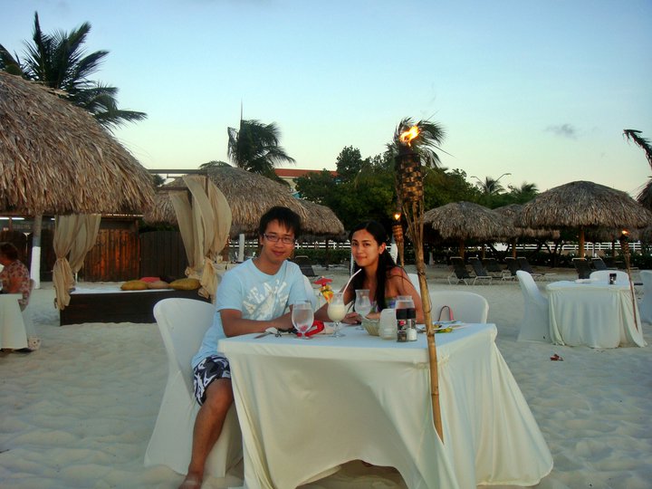 We took the local bus down and stopped at Eagle Beach. We walked out toward the beach and found the restaurant Passion. The waitress walked us to our table in the front row (wohoo)! The tables were nicely setup on the beach, it was our first time having dinner right on the beach!