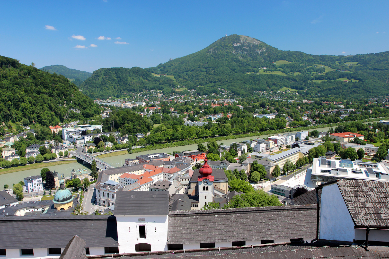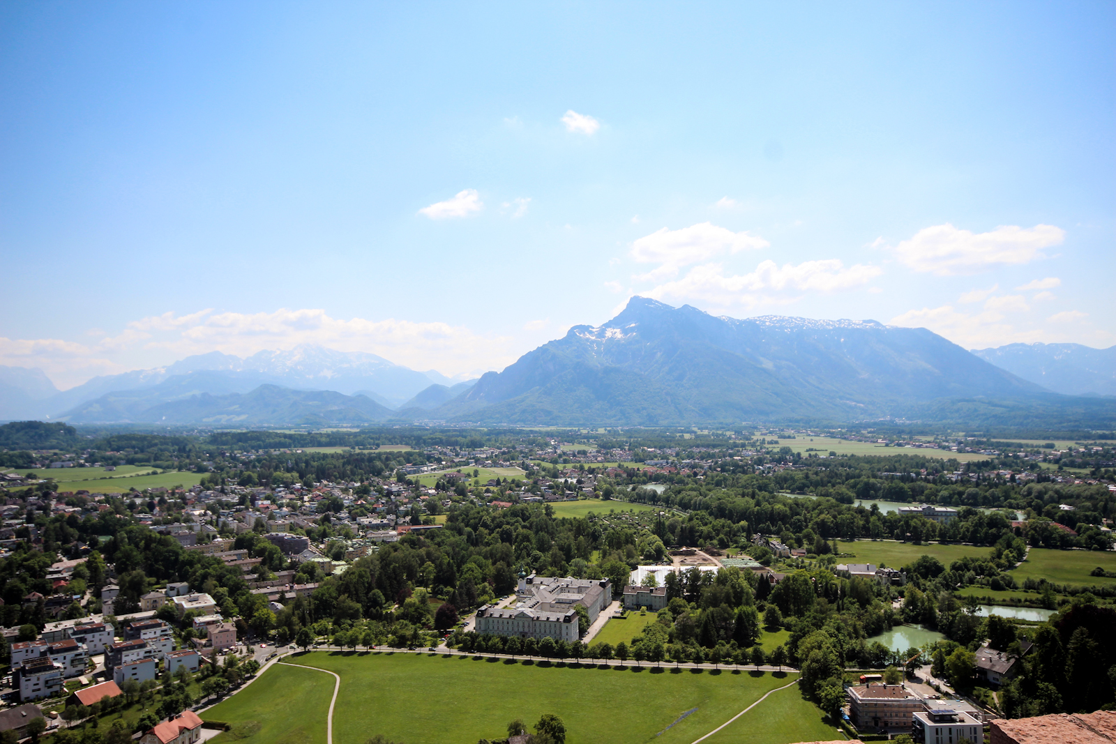 We went straight to Hohensalzburg Fortress before the tours arrive; we got the castle + funicular ticket for 11 euros per person. The line for the funicular wasn’t bad, we got up to the castle at no time! The view of Salzburg was the best from Hohensalzburg Fortress. The river split the old town from the new town of Salzburg and the city was surrounded by mountains.