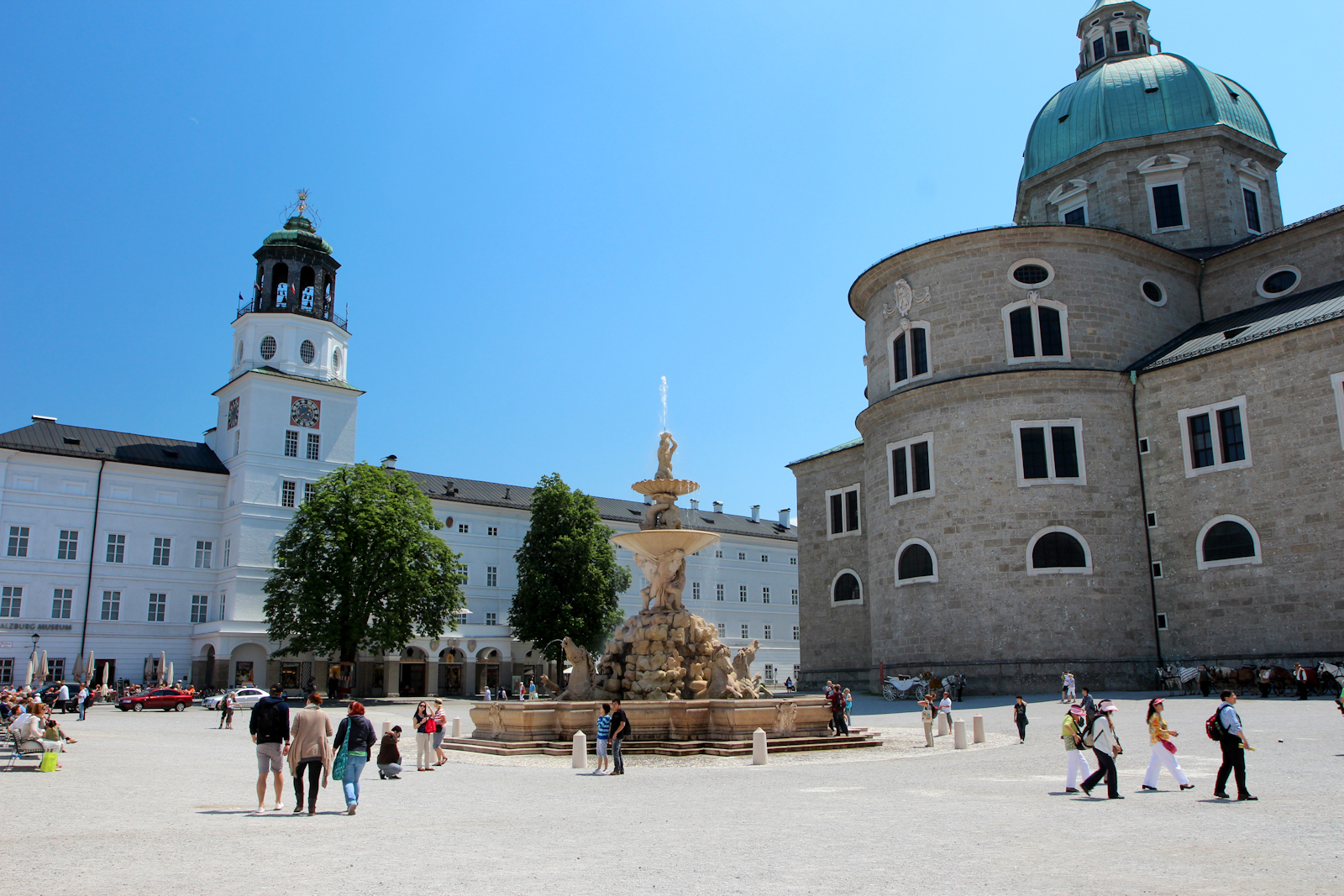 Salzburg Hbf was renovating and there wasn’t clearly marked signs to guide us the way to the old town.  We walked around the outside of the train station for few minutes until we figured out which direction to headed to. Good thing that I printed a map from google of where our hotel located so we were able to figure out which direction is the old town. The walk to our hotel which located next to the famous Mirabell Garden was about 10-15 min walk from the train station. After we checked in, we walked directly to the Mirabell Garden. The view of the Hohensalzburg Fortress from the garden was amazing, it looked like a background from a movie!