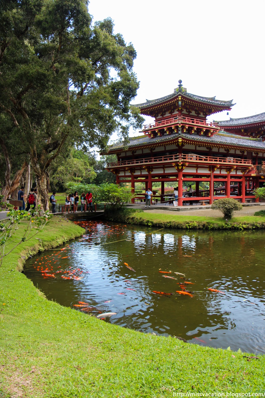 After dim sum, it was not even 10 am yet so we decided to have our 2nd attempt to the Byodo-In Temple! I have looked over google map last night to have an idea where it is located. We went back to the Kahekili Highway again and turned left at McDonald’s, it was the entrance to the Valley of Temple cemetery. We passed by the cemetery and there it was….Byodo-In Temple! The admission was $3 per person which was not bad for the beautiful temple and its surrounding scenery.