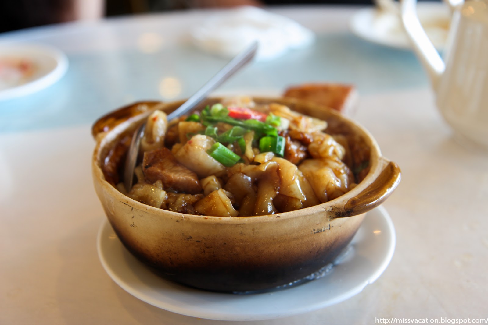 We were the first customers in Fook Lam, this restaurant is much smaller than the dim sum restaurants in Boston. The menu was right underneath the table glass and its prices for the “medium” and “large” plates were more expensive. The lady wheeled the cart to us and we ordered the shrimp dumplings, the short ribs, and the chicken feet. Their dish of shrimp dumplings only had 3 dumplings instead of 4 so we had to order 2 orders for 4 of us. Looking at how small their dishes were, I wasn’t impressed by them but I was so wrong! I took a bite of the shrimp dumpling and it was 10 times better than the ones in Boston!! The shrimp inside was really fresh and the skin was really thin! There were like at least 2-3 shrimps inside unlike the shrimp dumplings in Boston; mostly were powder inside!
