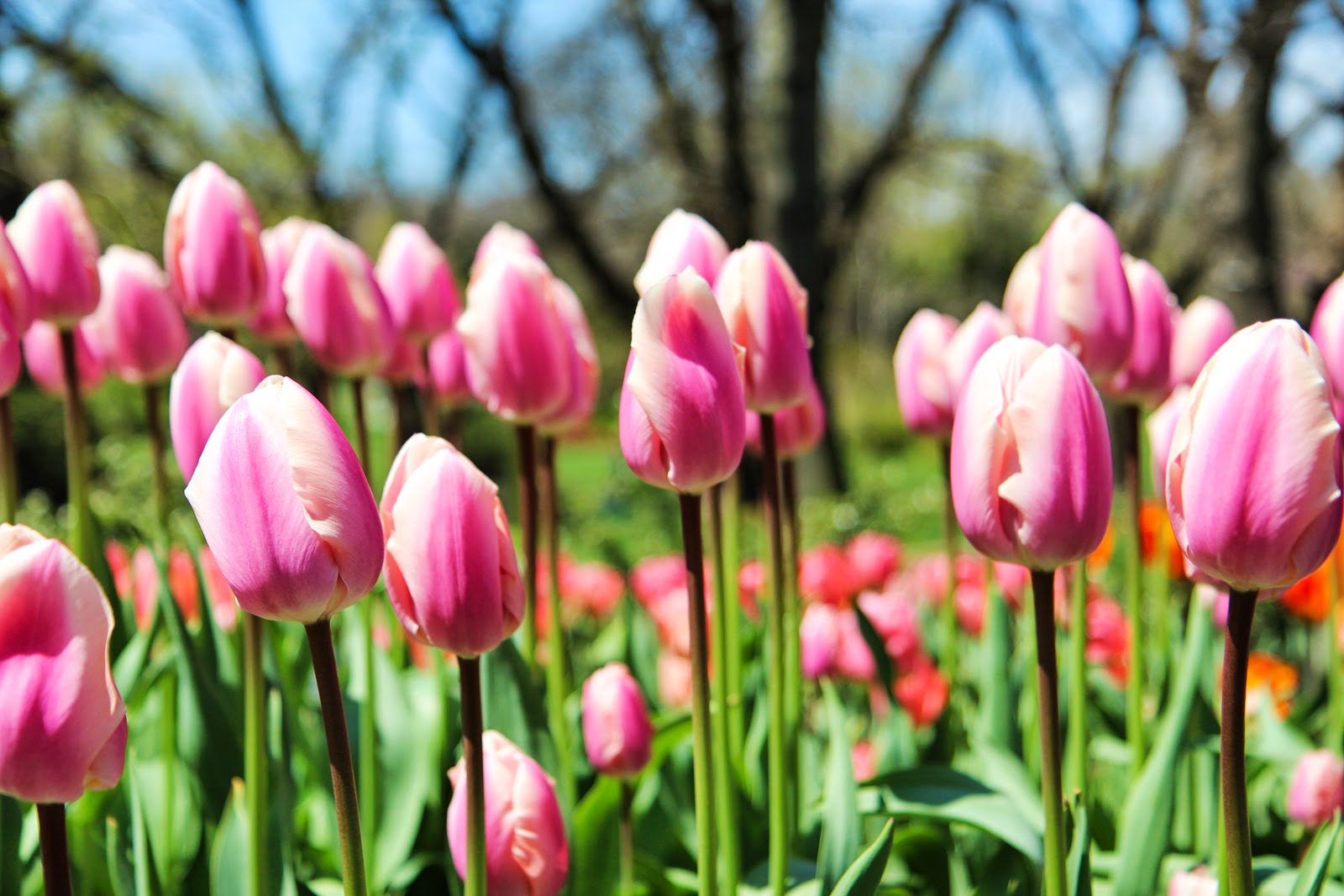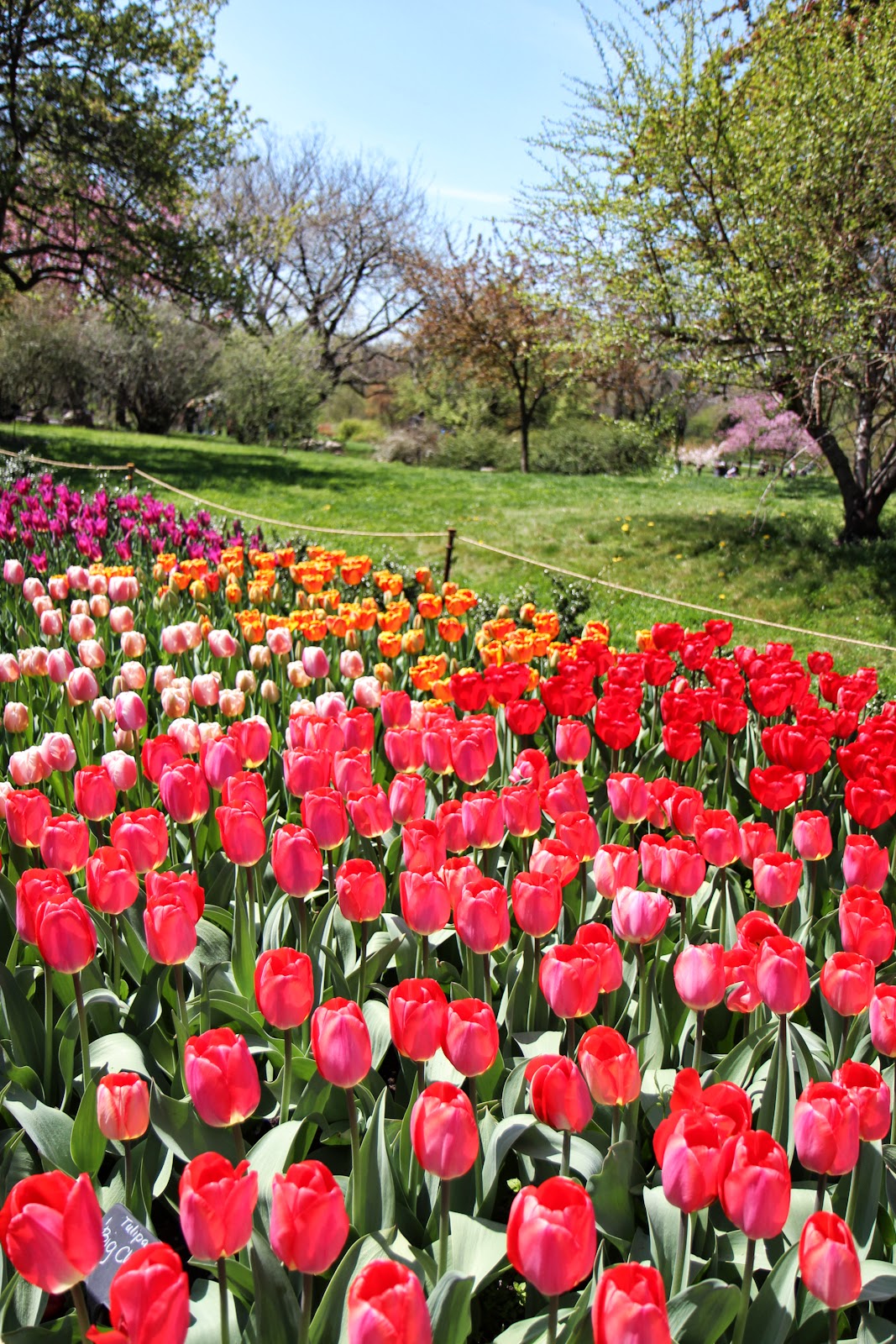 I love the arrangement of the tulips from light pink, to pink, then red, and bright red!