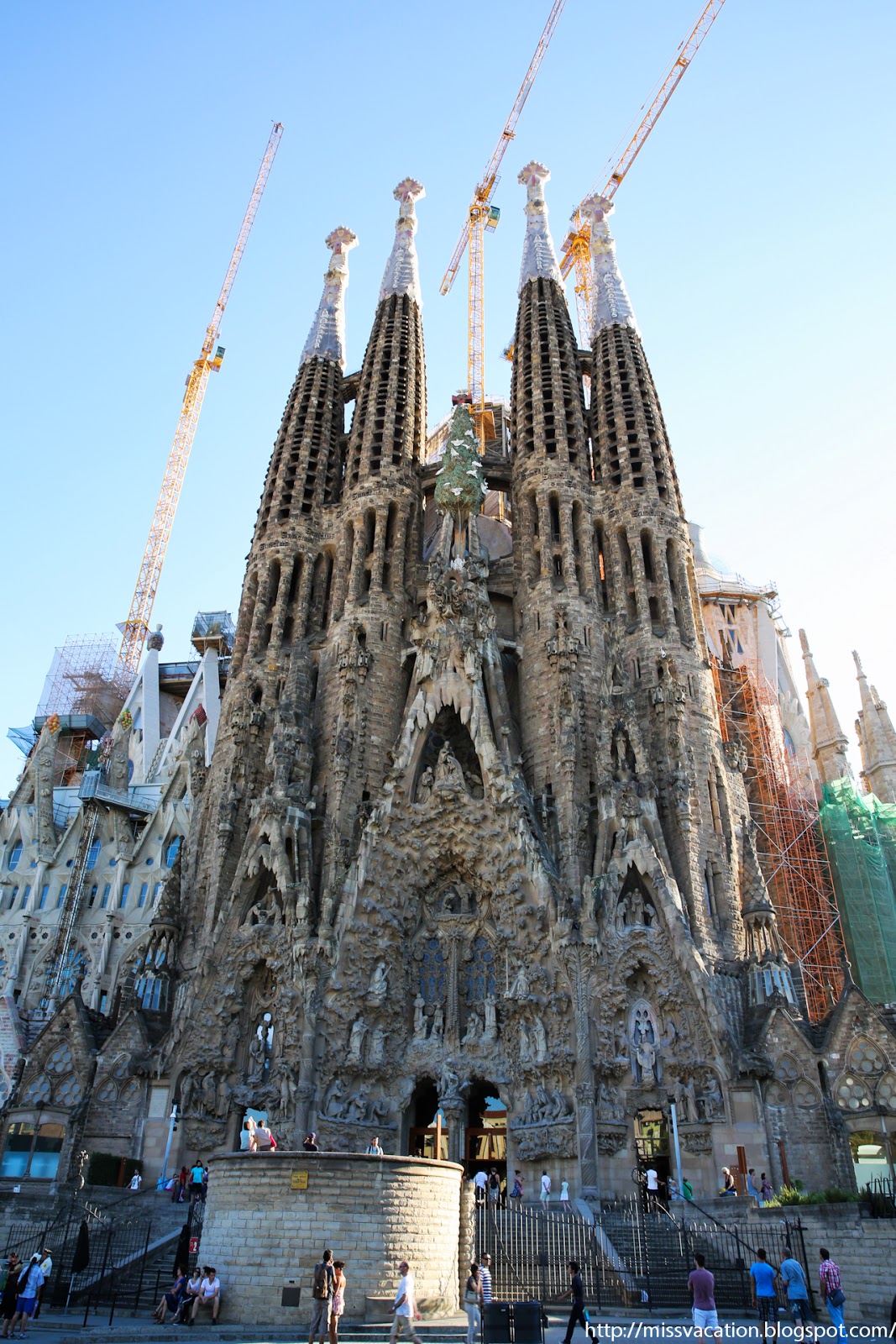 We walked to Catalunya to take the metro, bought the T10 ticket (10 trips for 9.80 euros), took the L3 Subway towards Trinitat Nova, stop at Diagonal, change to L5 towards Vall d’Hebron, stop at Sagrada Familia. The metro stations in Barcelona were very hot, no fan, no AC!!! But the metro was fast, we never have to wait more than 5 min for the metro. We were very cautious in the metro station since I read a lot of pickpockets and I was carrying cash for our dinner. When we switched lines at Diagonal, there were metro staff there checking tickets so hold on to your tickets, don’t discard them right after use, wait until you reached your destination! We got to Sagrada Familia stop at no time, the moment I stepped out and turned my back OMG I saw the famous Sagrada Familia! It was much larger than in picture!