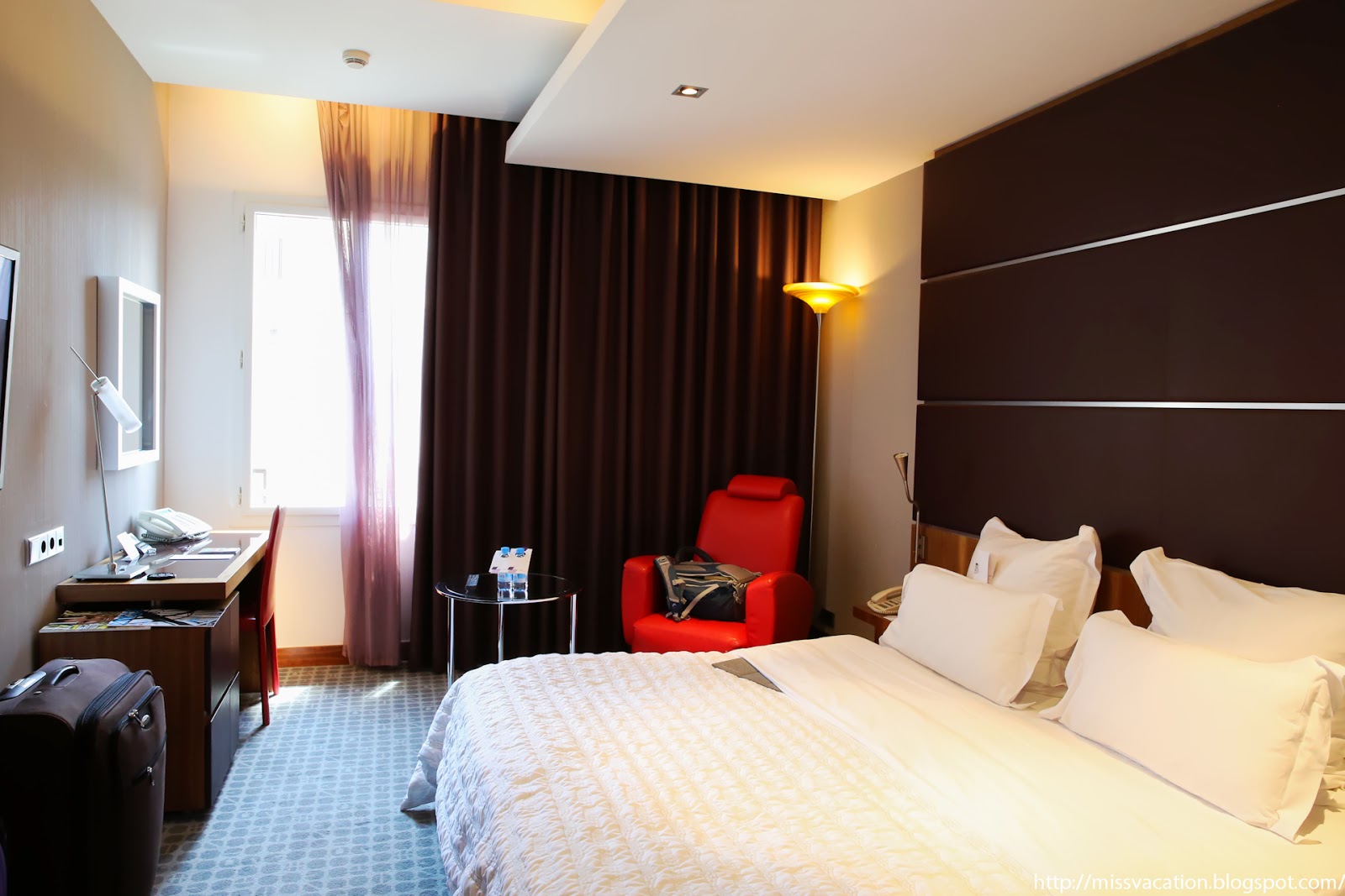 We were looking for a tapas menu and found Choquito….wrong choice! Well, I was expected high prices and not so good food on La Rambla but we wanted to stay close to our hotel. Our lunch was two plates of tapas and one seafood paella to share and two sodas, bill was 40.67 euros!!! The paella was okay not as salty as I thought, food overall was just okay. We took our time to eat since we have time to kill!!! Alright…by 12:30 pm, we walked back to our hotel and check and the lady told us to wait few more minutes. We finally got our room key and got to our room….it was clean and modern decor.