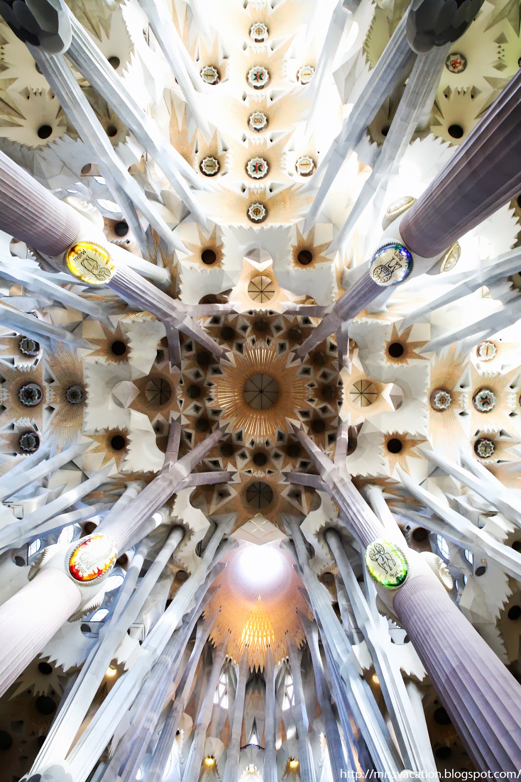 When I looked up, it gave me a feeling of fresh air, openness, calmness, and peacefulness. I imagined it would be so much more beautiful if the scaffold didn’t block the light coming through the ceiling. Too bad! But it was still very unique, I have never seen any basilica, church, or cathedral in that style. Within the central area, there was no standing allowed; everyone must be seated. I literally sit in one row, looked up, take a photo, walk to the next row, sit down, looked up, take a photo, and repeat! I tried to get different angle shots. Here’s my favorite: