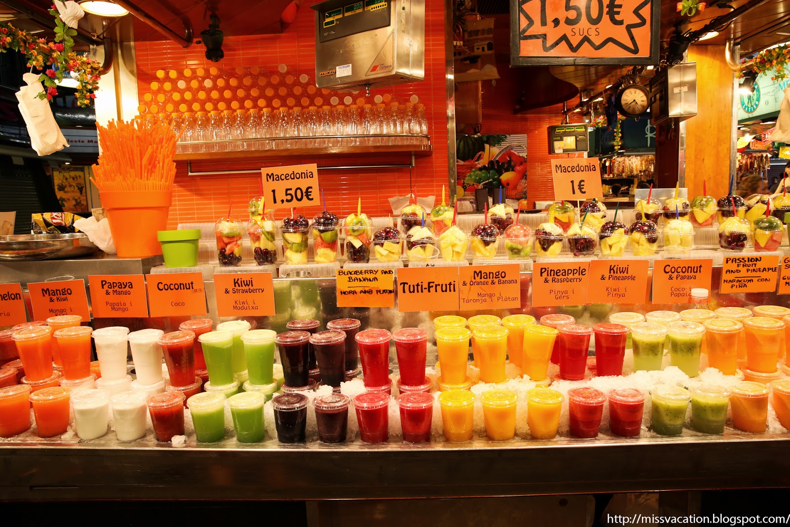 On our walk back to the hotel, we passed by La Boqueria so we went in to get a smoothie. This smoothie stand, it’s really emphasizing on juices….look at the huge tubes! There were staff on the back constantly cutting fruits and mixing them and then poured into the big tubes!