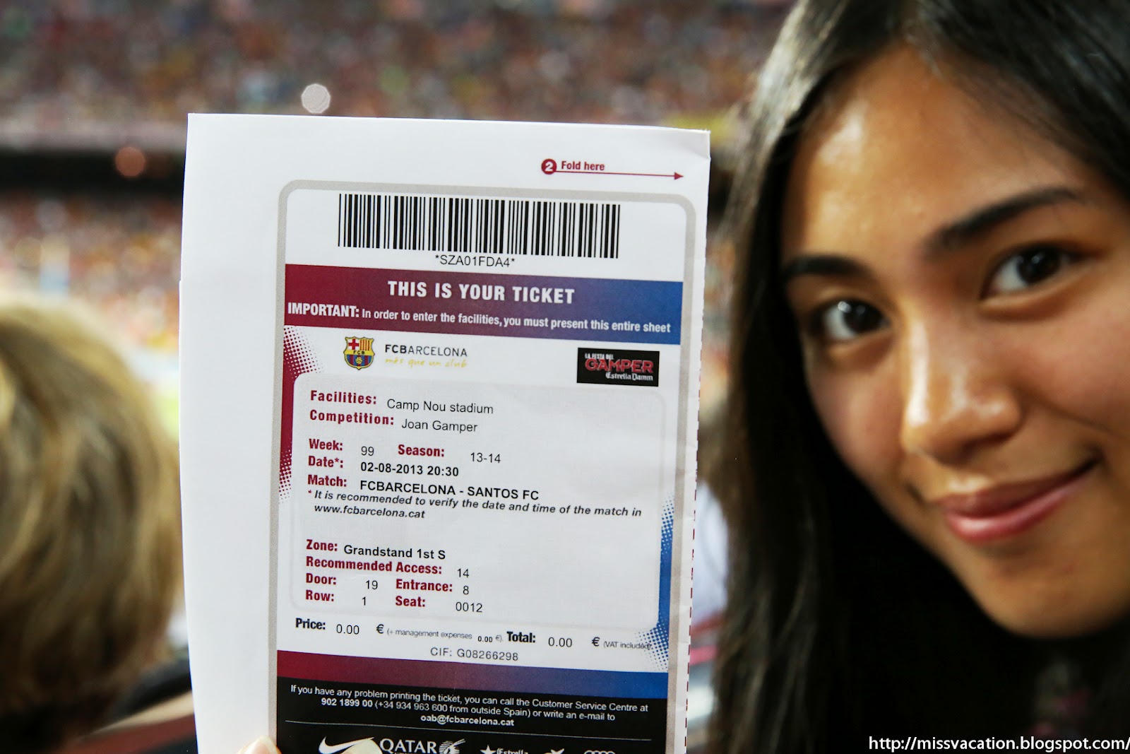 From there, we found our entrance and access gate: Door 19, Entrance 8, Row 1, Seat 12!! I woke up at 4 am on the day the tickets went on sale at the FC Barcelona website to get those tickets! Ticket went on sale at 10 am Barcelona time which mean 4 am my time. I set the alarm, woke up, ran to my laptop to purchase tickets. The website was down and I kept trying! After few minutes of trying hubby said let’s go back to sleep and wake up later to buy. I told him to go back to sleep and I’ll wait. I tried for another 5 minutes and finally the website was back up 🙂 All the good seats right in front of the entrance where players will be entered were sold! So I picked the section on the right of the entrance, row 1 wohooo!