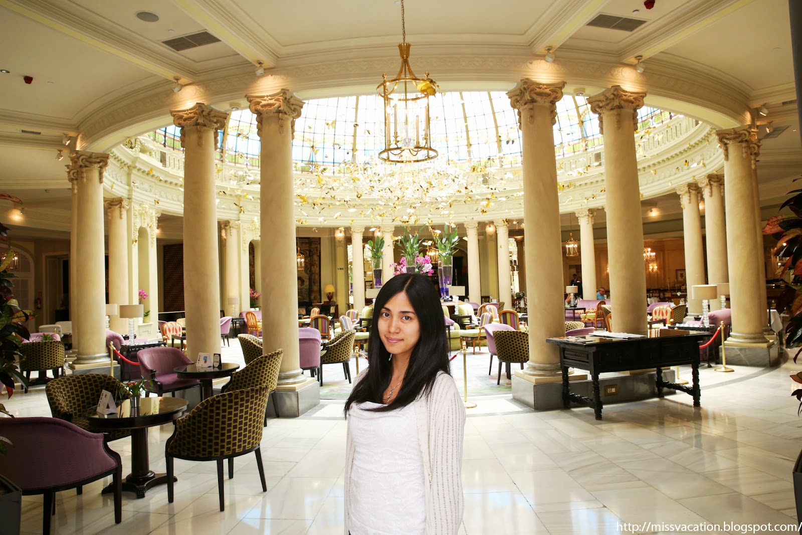Lunch time, we went down to the La Rotonda Restaurant in the hotel where its famous for its stained glass dome to see it and have quick tapas. The restaurant was running a summer special on tapas: 4 tapas and a glass of wine for 15 euros (a bargain compared to other menu prices at the restaurant). We actually were there to just see the stained glass dome but we don’t want to walk in to take photos and walk out hehe!