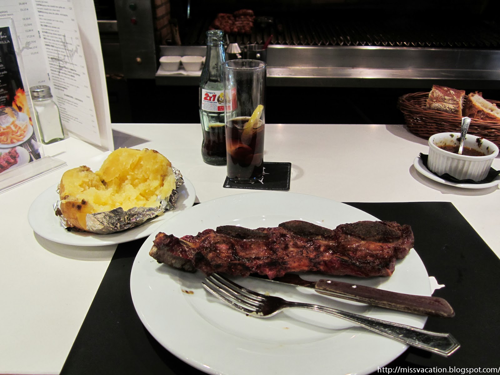 The moment we stepped out of Sol station, it was hot! I mean hot as in you can see the heatwaves raising up from the road! Did I mentioned already that the hottest time of the day in Madrid is not noon, instead it’s around 5pm-7pm after the whole day the road been heated by the hot burning sun? We walked along the way to get back our hotel and hoping to be able to find a restaurant we like to have our dinner. We picked Le Mario by its 9.5 euros menu! Le Mario is a grill-pub restaurant, we sat at the bar table and watched the waiter/cook grilled our food 🙂