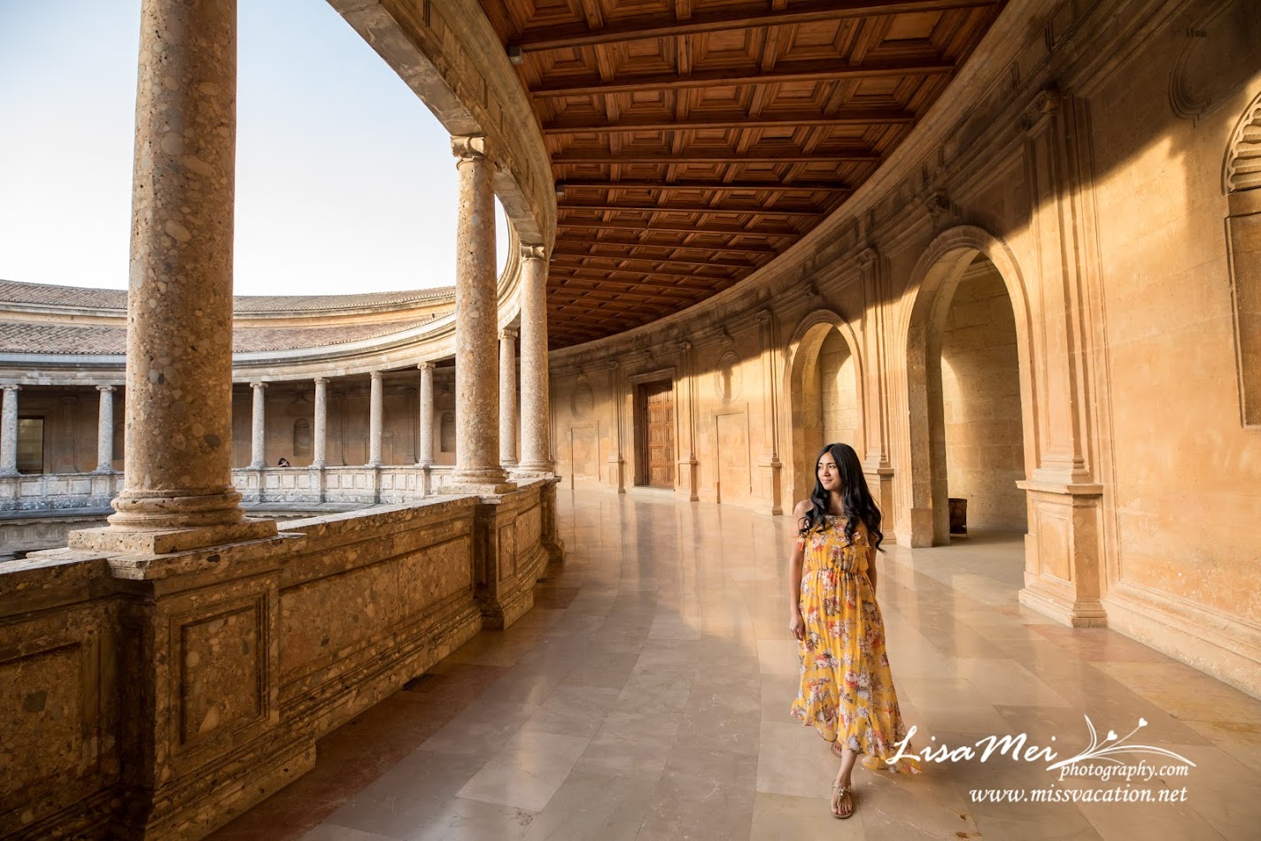 Outside of the palace looked very rectangular, almost square like, but the inside is totally different! The circular design is unique that it’s Renaissance-style compared to the rest of the Moorish style in the Alhambra complex.