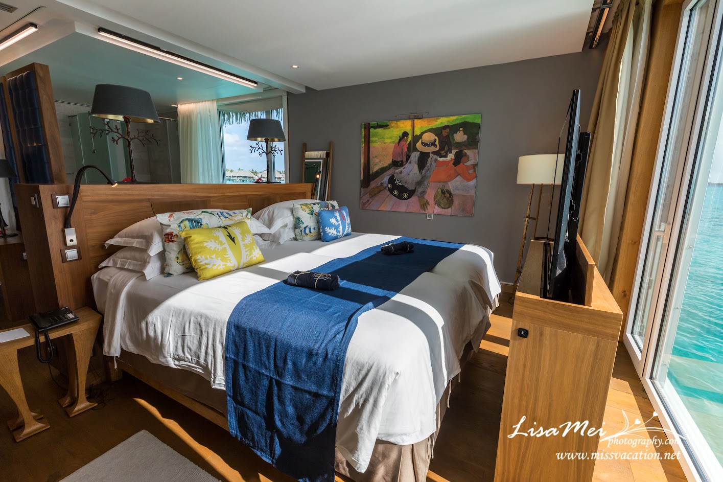 We hang out at Judy’s room until we got a call that our room is ready and they sent golf carts to pick us up. Our room was 1001, one of the two 2 bedrooms Villa Teremoana at the resort and located on the right pontoon. It was a long ride from Judy’s room. Our presidential villa for two nights!!! The relationship manager, Axelle, gave us a tour of the villa and we were treated like super VIPs starting from there!