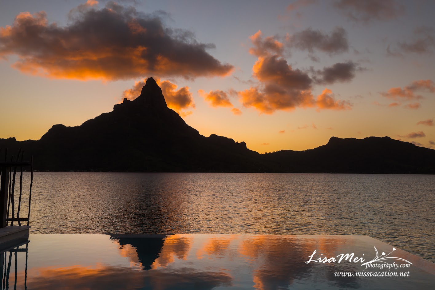 - Photo ops – 5, the best views of Mount Otemanu of all the resorts! The overwater bungalow pontoons, the chapel, the beach, all are picturesque spots!